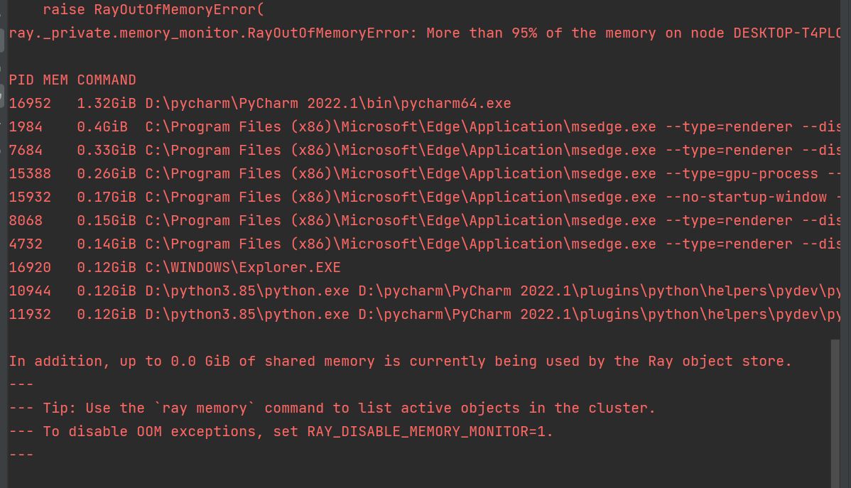 任务表述:使用ray模式进行调用算法时,极大概率会出现内存爆炸的问题,如下图所示。