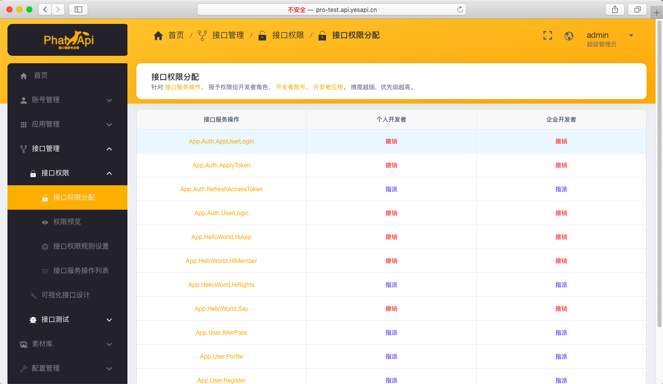 温馨提示:管理员(包括普通管理员和超级管理员,以及新增的自定义管理员)拥有全部开放平台的权限,无须分配。