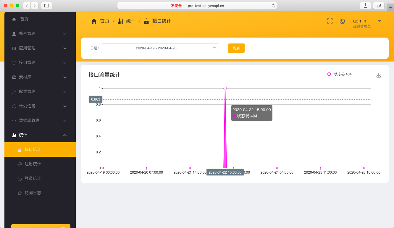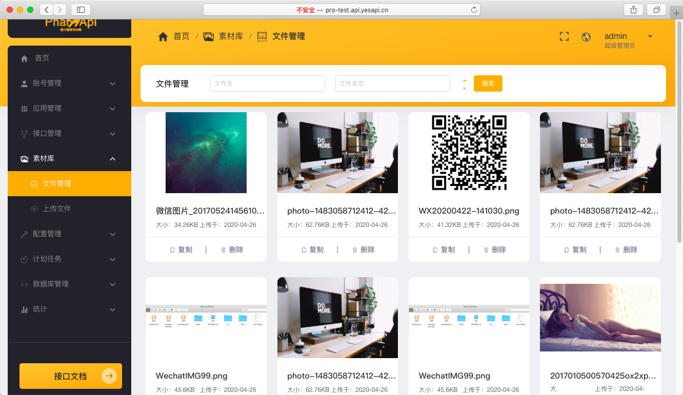 或者通过在线接口文档页面,点击【管理后台】直接进入,例如:
