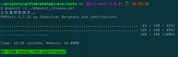 目前,配套接口大师的单元测试,共有148个测试用例, 347个断言,总执行时间约3秒,100%测试通过率。