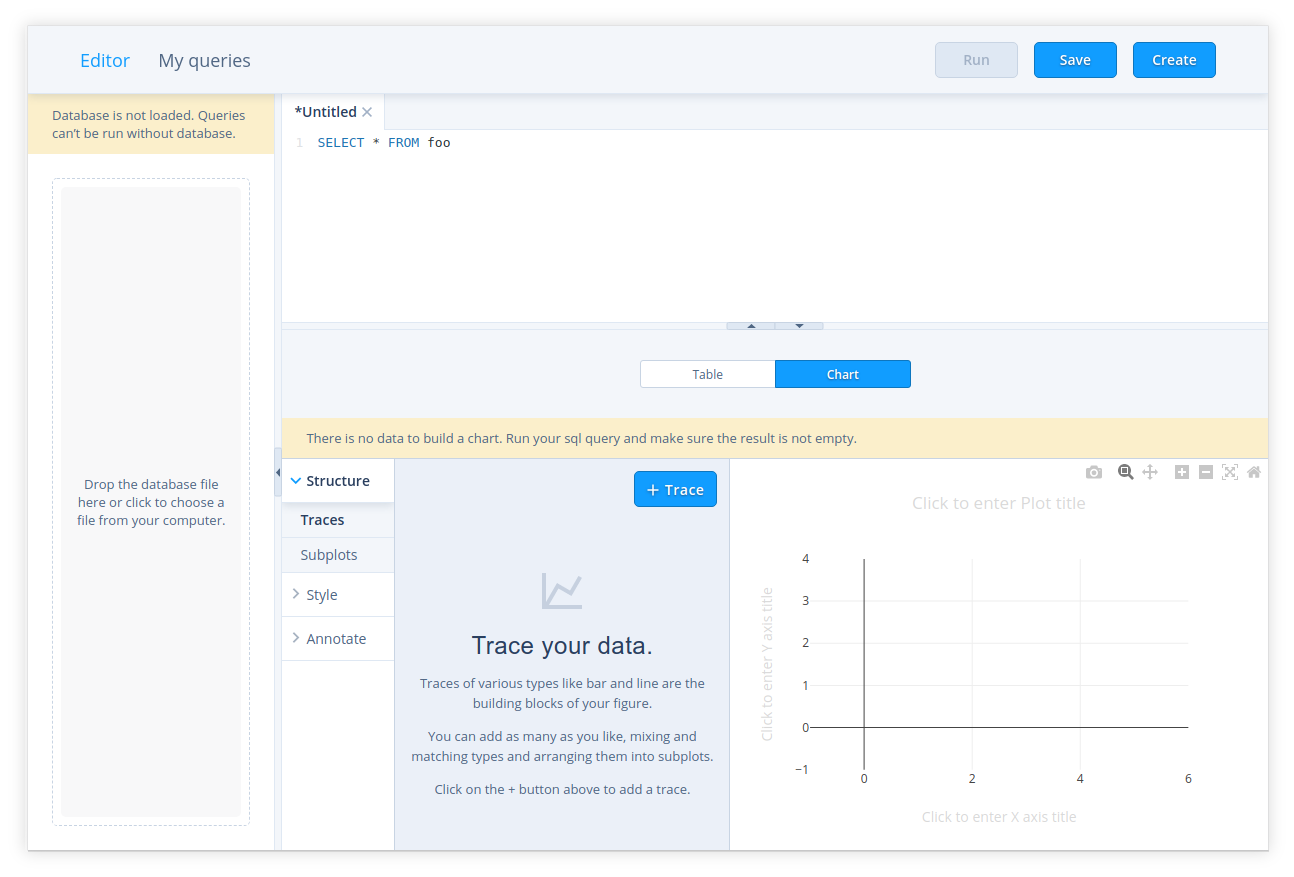 It is built on top of react-chart-editor, sql.js and Vue-Codemirror in Vue.js.